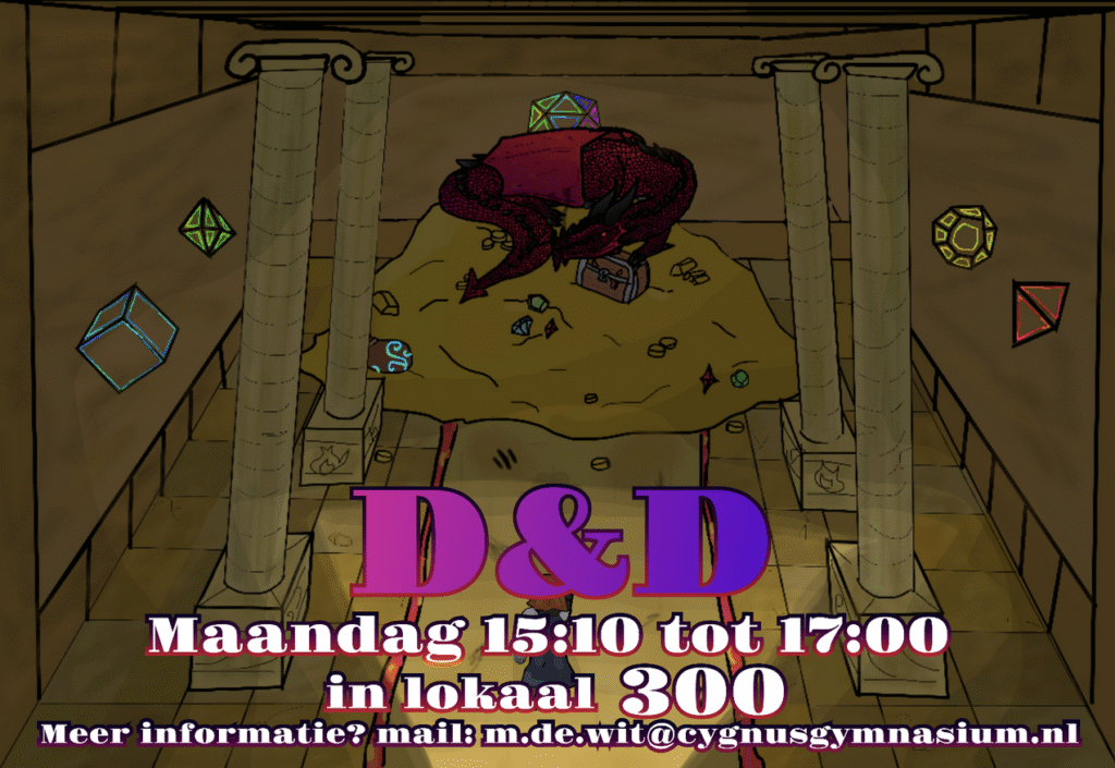 Droom jij ervan om een pact te sluiten met een duivel, 300 magische bonen te kopen of een (bloederige) revolutie te starten? Sluit je dan aan bij dé Cygnus D&D-club! De club werd vorig jaar opgericht en verwelkomde veel beginners die nog nooit Dungeons & Dragons hadden gespeeld. Inmiddels spelen zij nog steeds met vol enthousiasme.